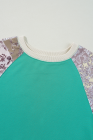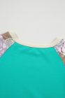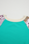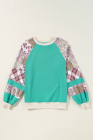 Top Aruba Azul Xadrez Vintage Paisley Patchwork Manga Longa Raglan