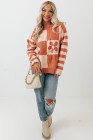 Suéter de manga listrada com estampa floral xadrez marrom