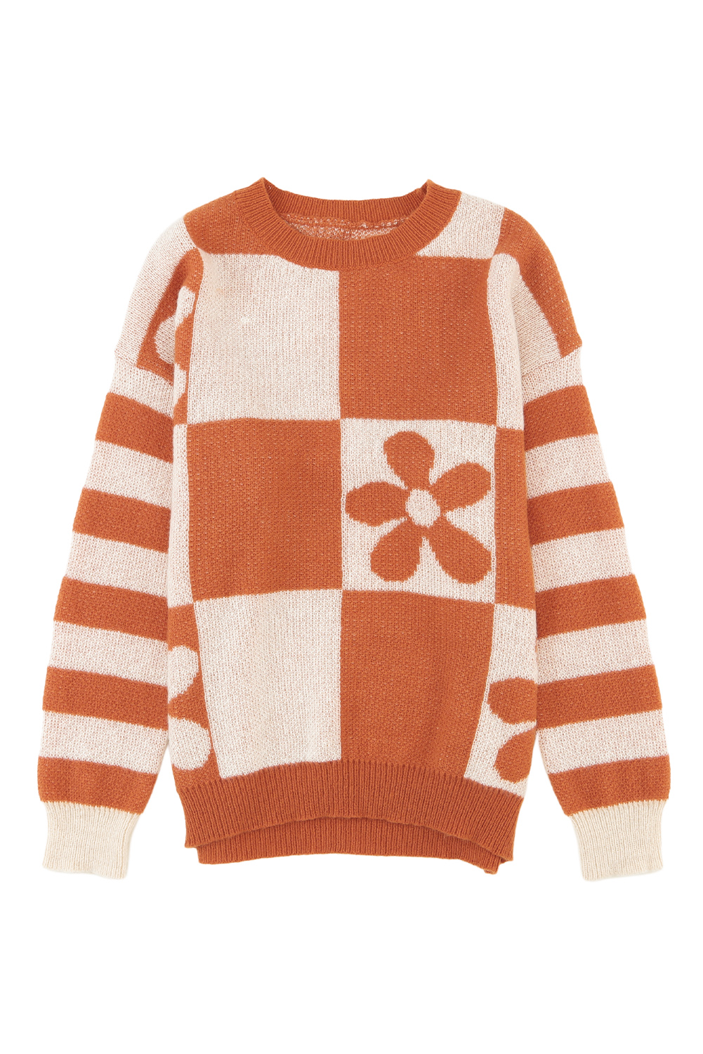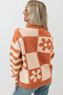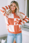 A estampa floral xadrez marrom deste suéter é única e atraente.
