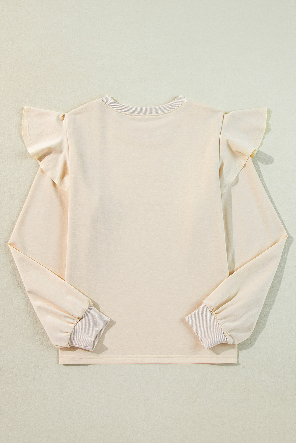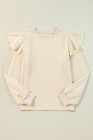 Blusa de manga comprida com babados e cor sólida Jet Stream