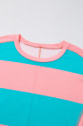 Blusa solta listrada em bloco de cores azul claro com ombros caídos