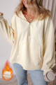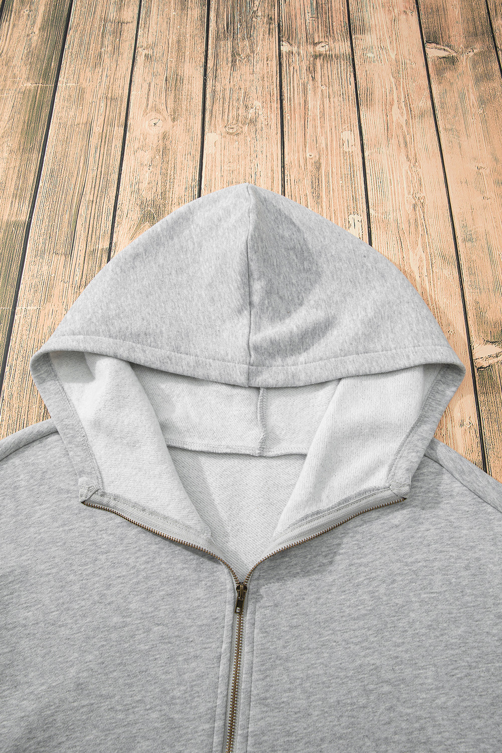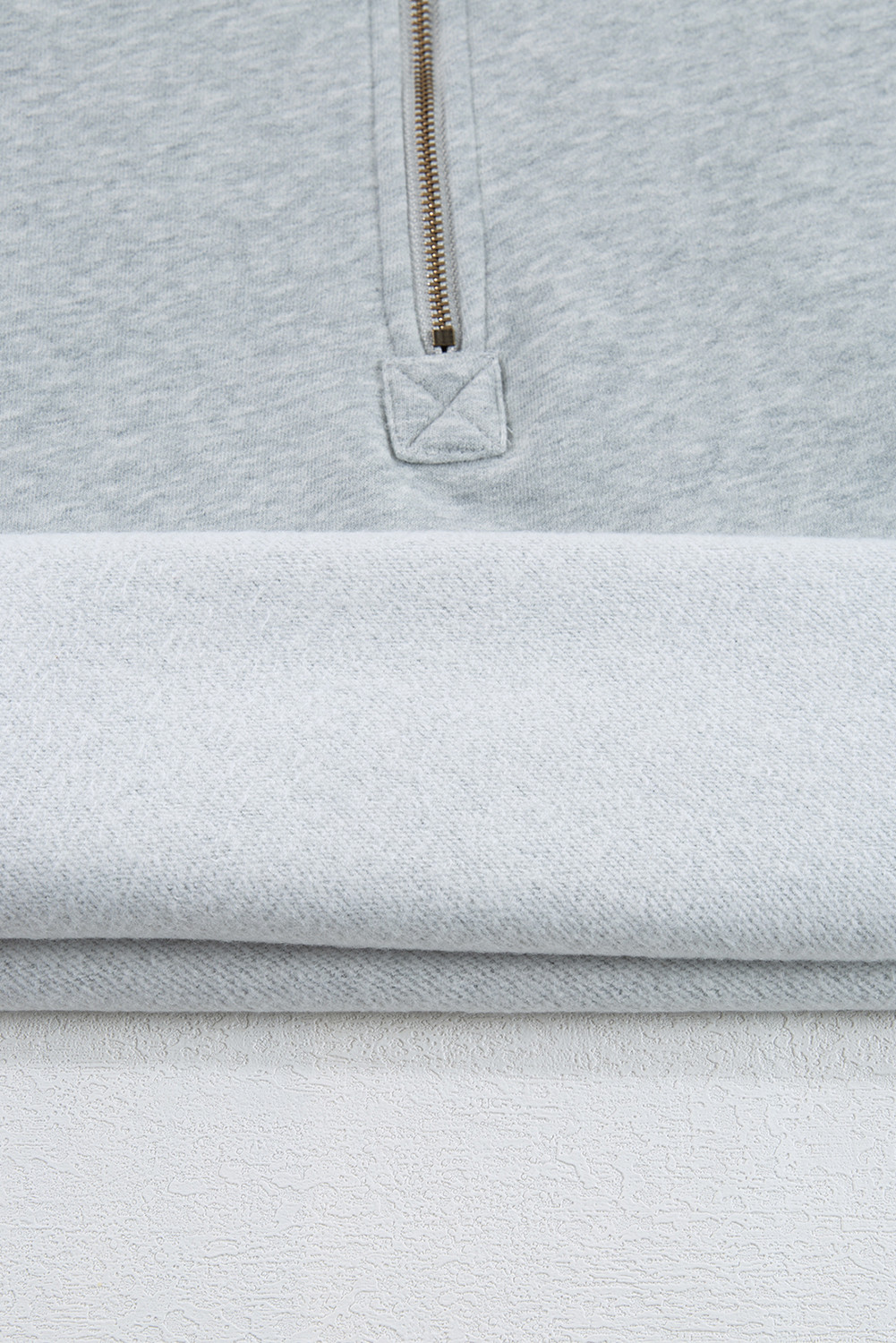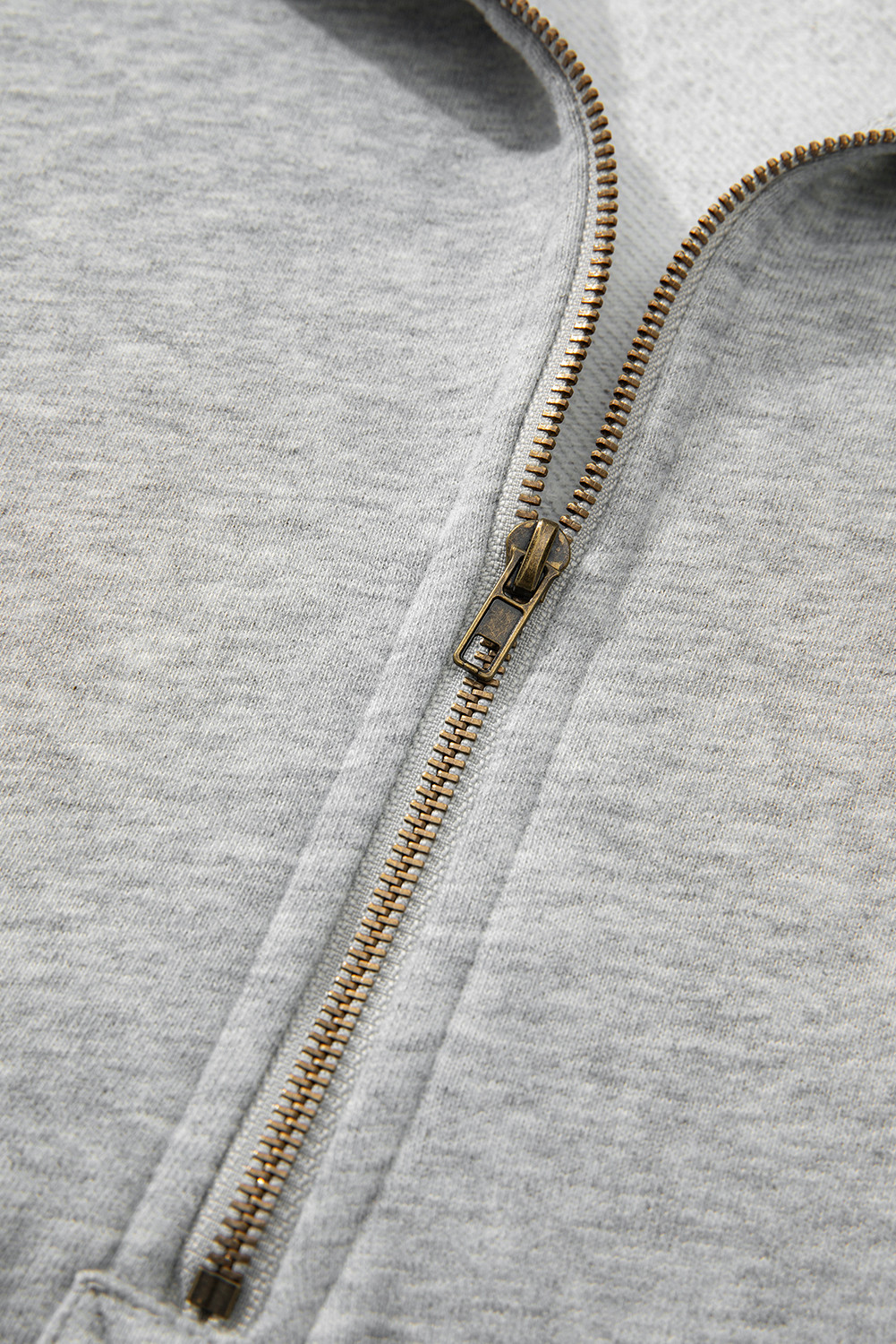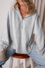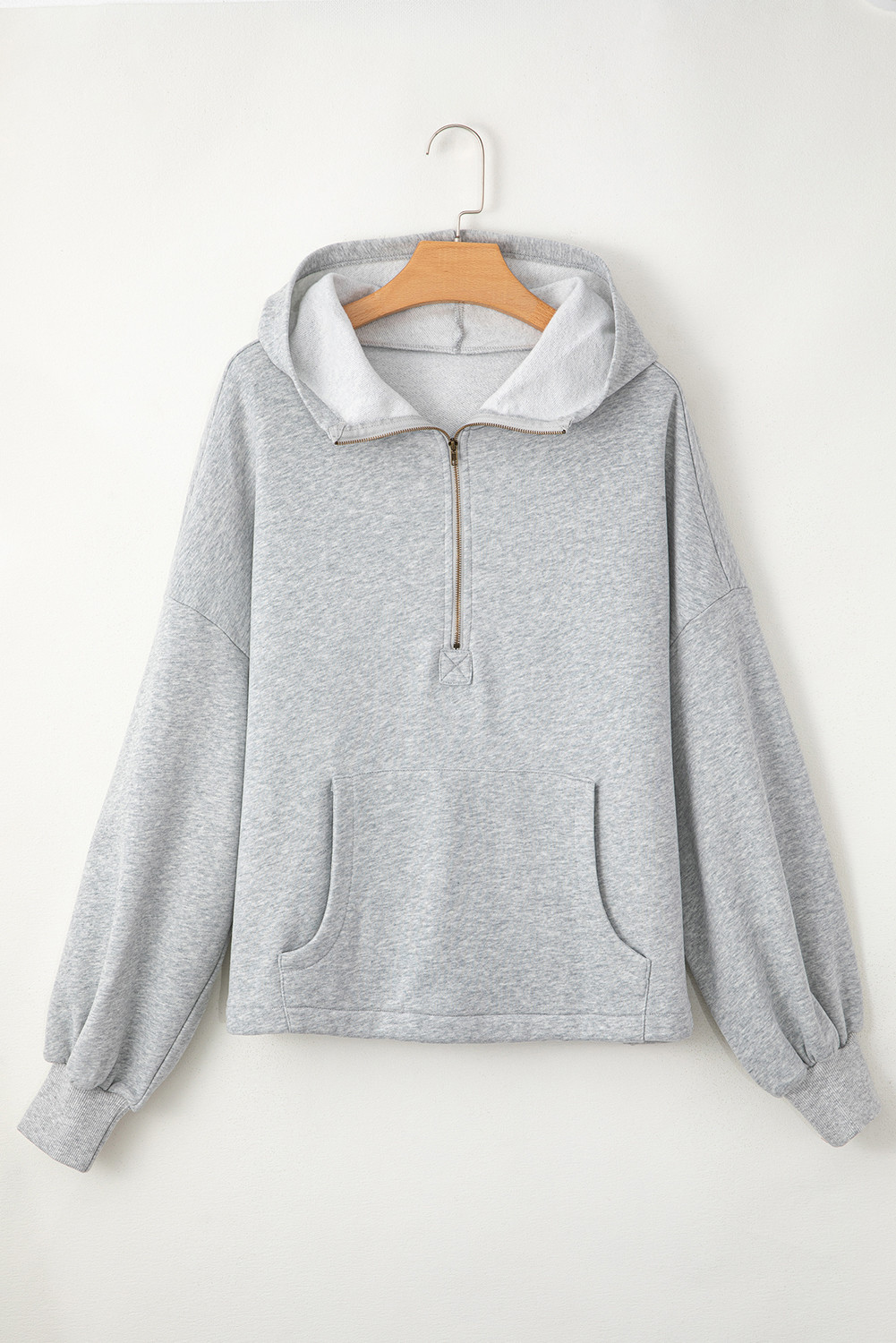 O canguru com meio zíper forrado de lã cinza claro bolsos com capuz solto
