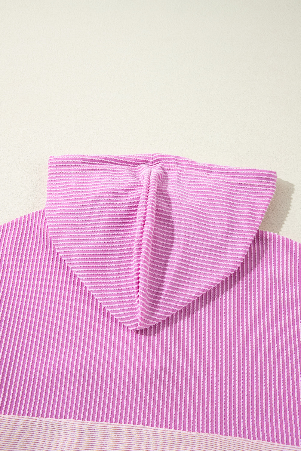 Top com capuz com cordão e cordão rosa claro com patch colorblock e bolso