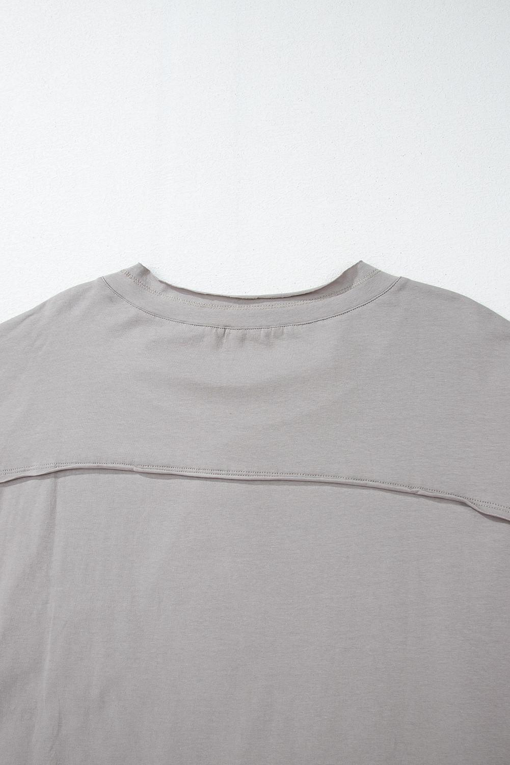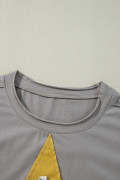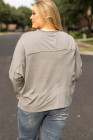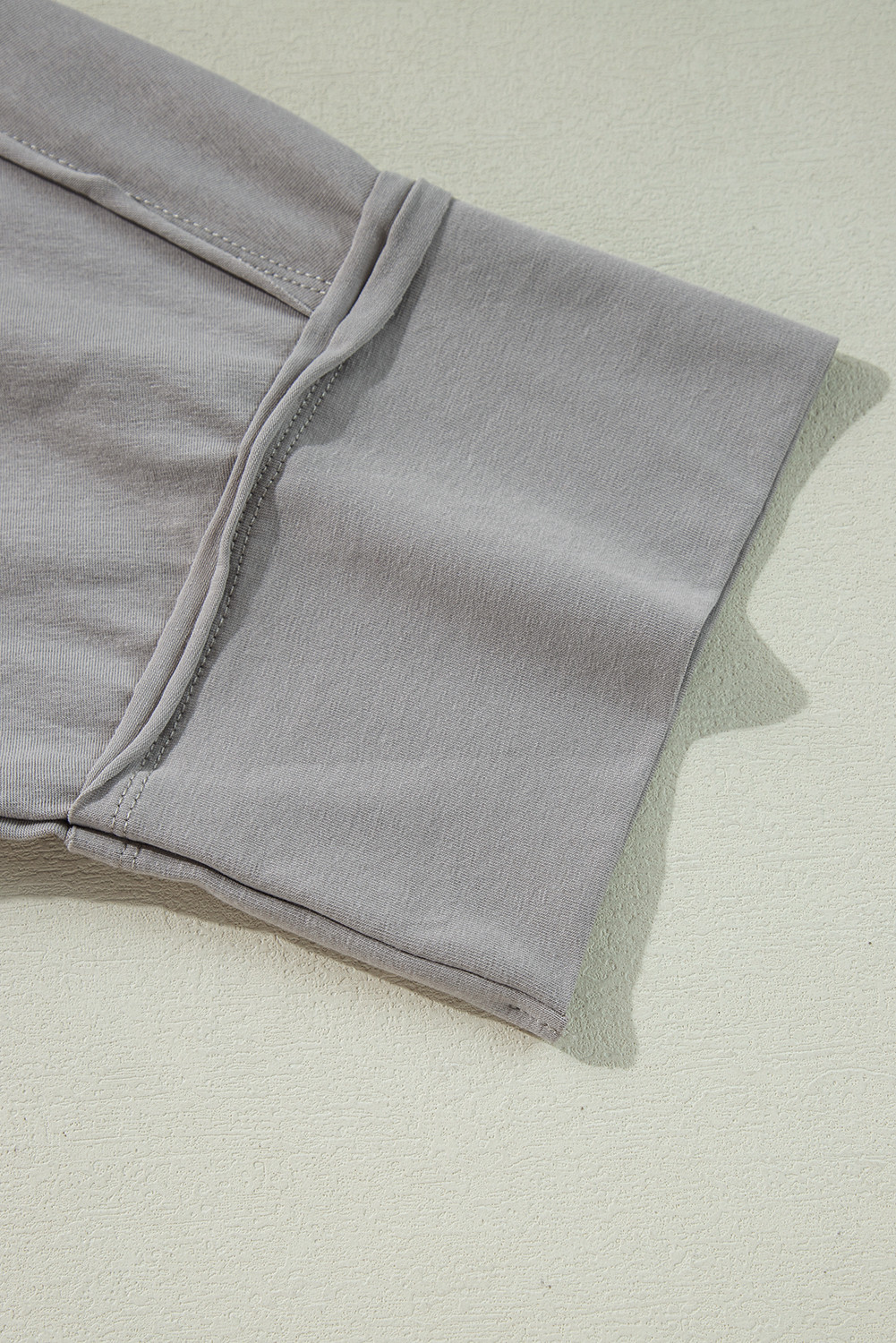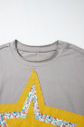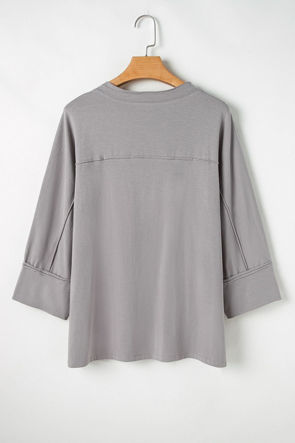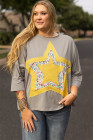 Top cinza médio floral estrela remendado manga 3/4 plus size