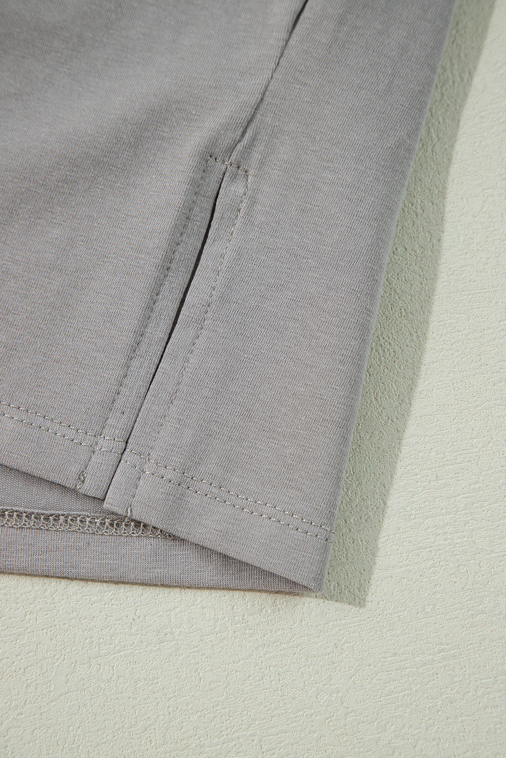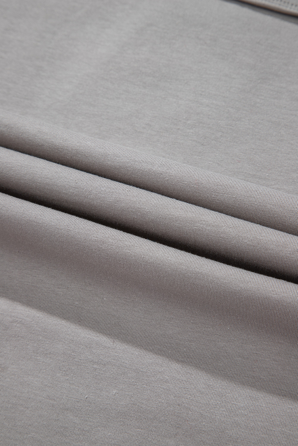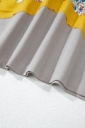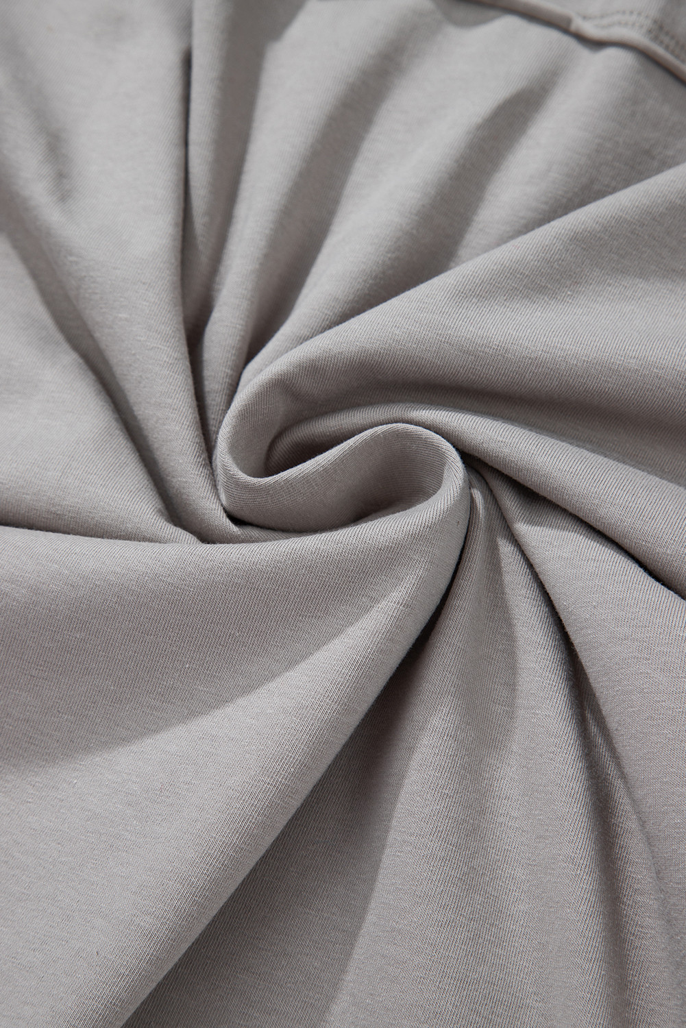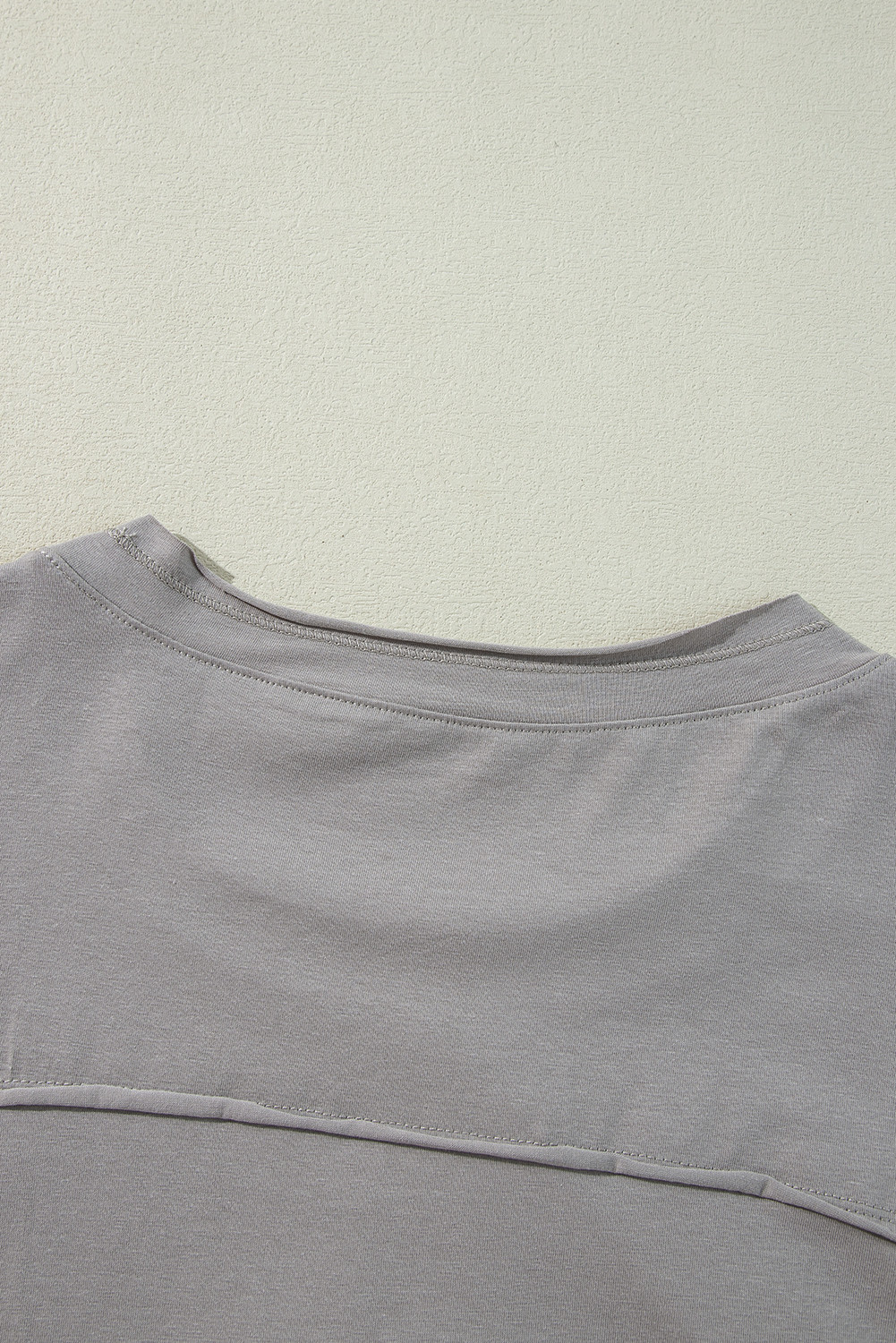 Top cinza médio floral estrela remendado manga 3/4 plus size