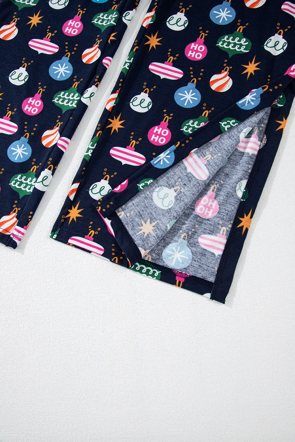 Conjunto de pijama de camisa e calça com estampa de luzes de Natal coloridas azul marinho