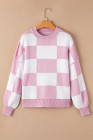 Início Suéteres e Cardigans Camisas / Suéter Manga Bispo Xadrez Rosa