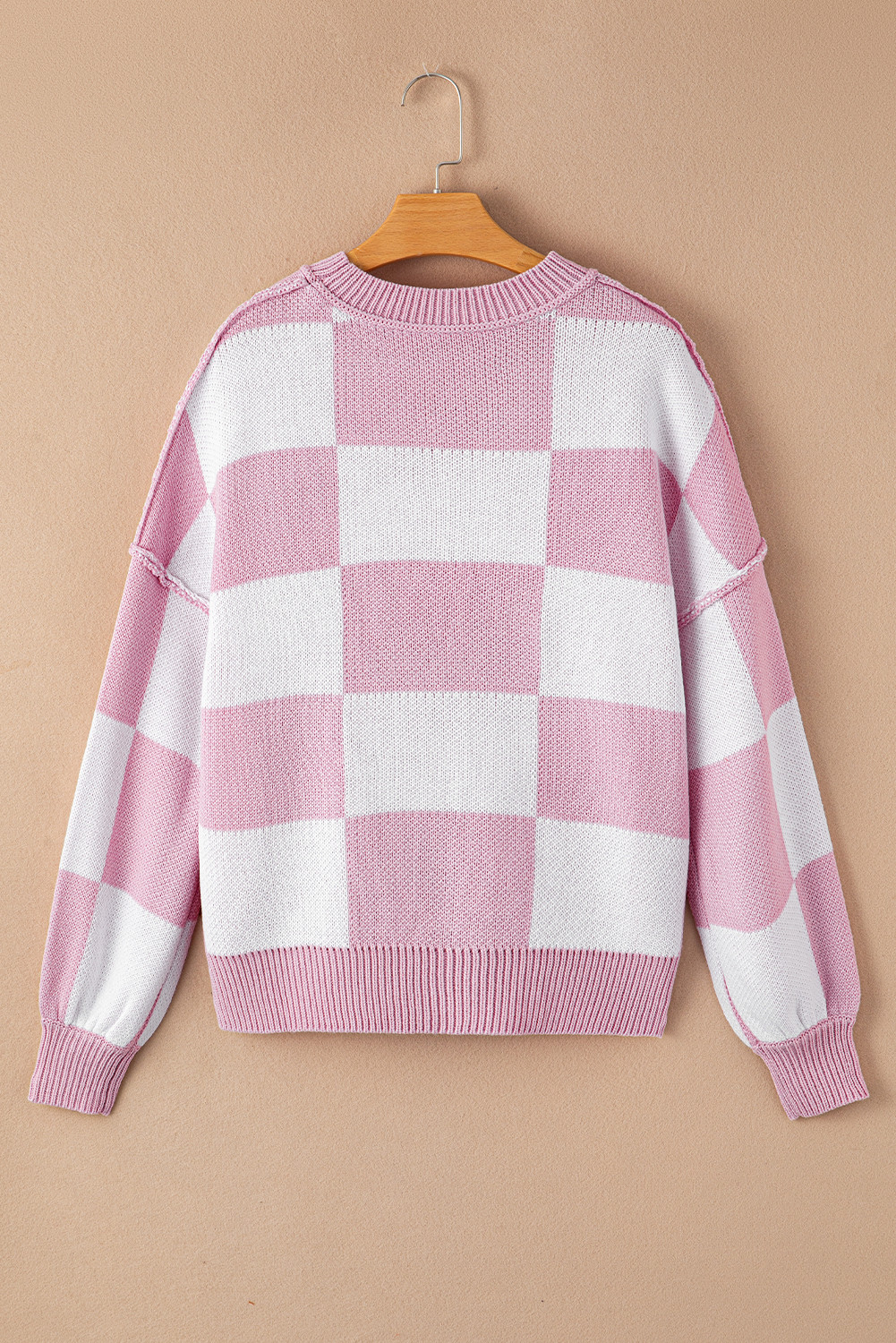 Eleve o seu guarda-roupa com este elegante suéter xadrez de manga bispo