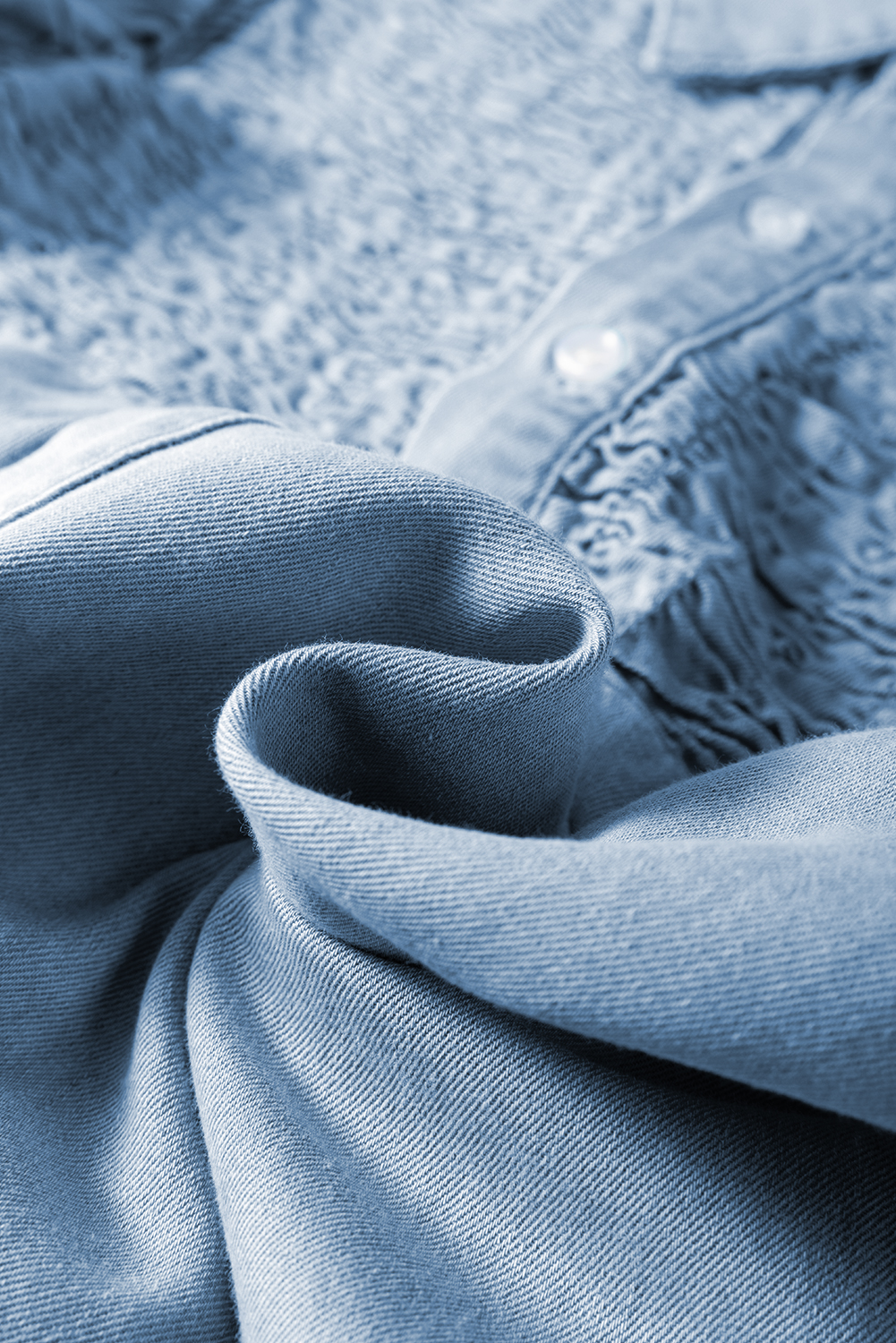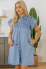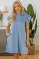 Vestido curto jeans com botões e mangas esvoaçantes e franzidos Beau Blue