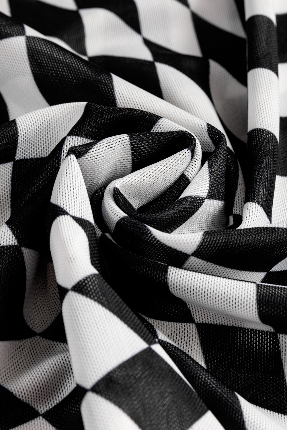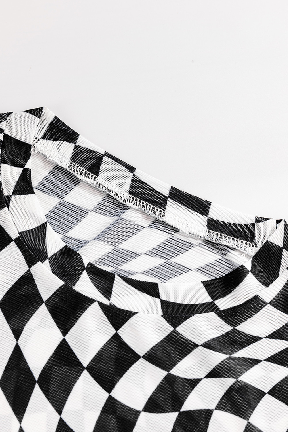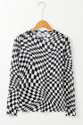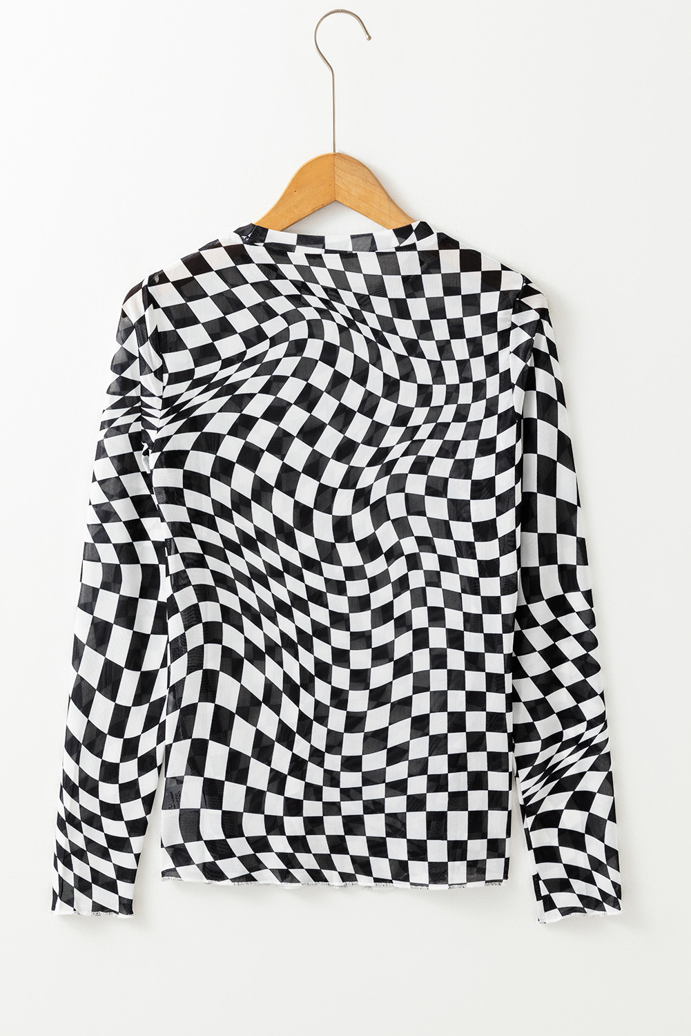 Blusa de malha xadrez preta com gola falsa e manga comprida