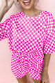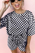 Conjunto casual de 2 peças de blusa e short xadrez preto
