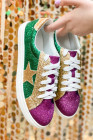 Sapatos baixos de renda com lantejoulas de três cores Mardi Gras verde-escuro