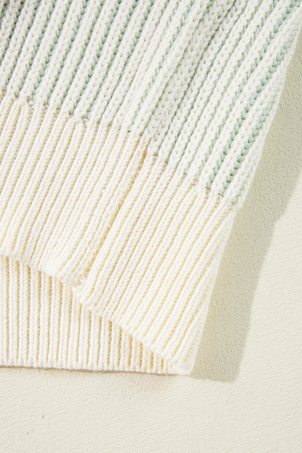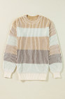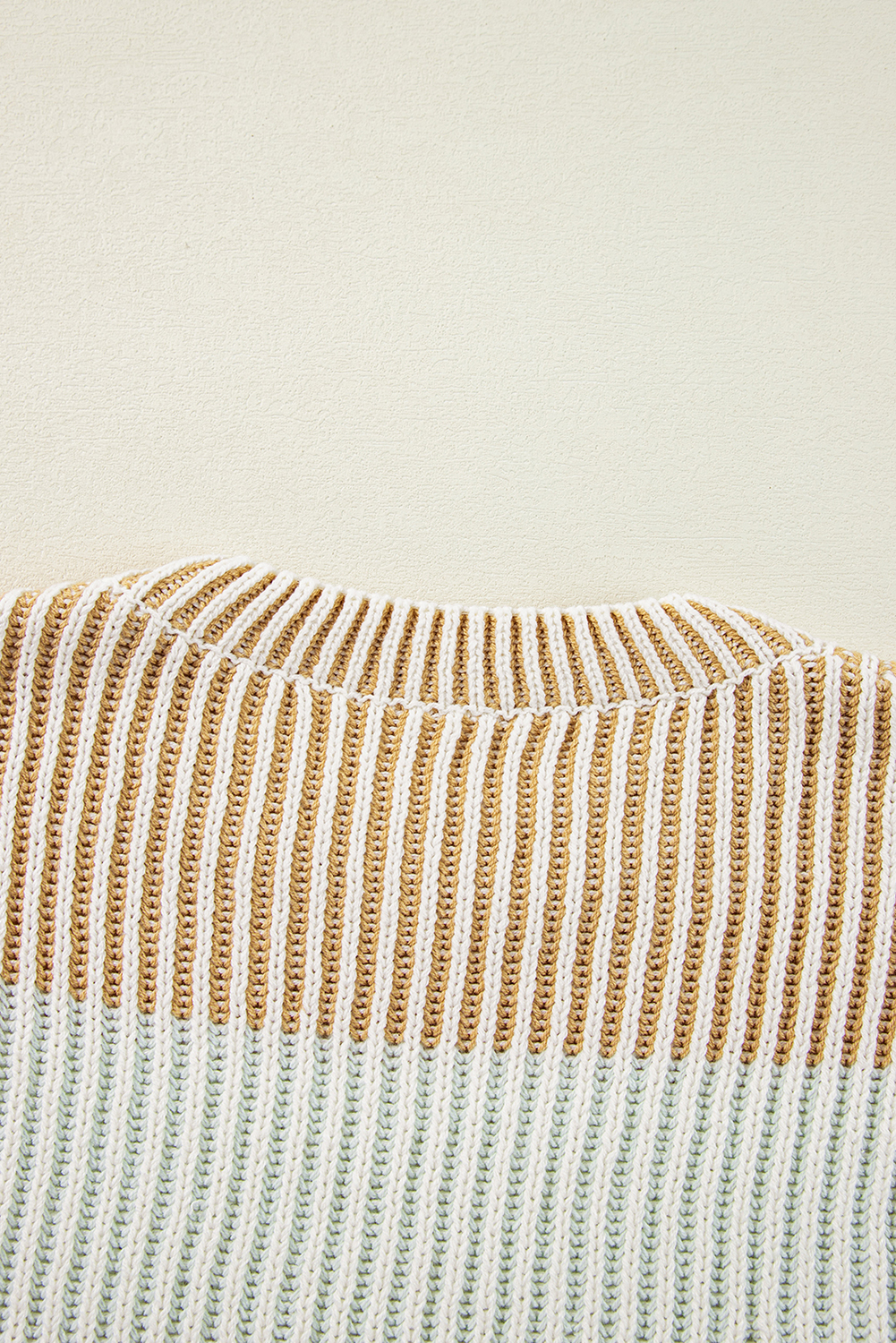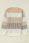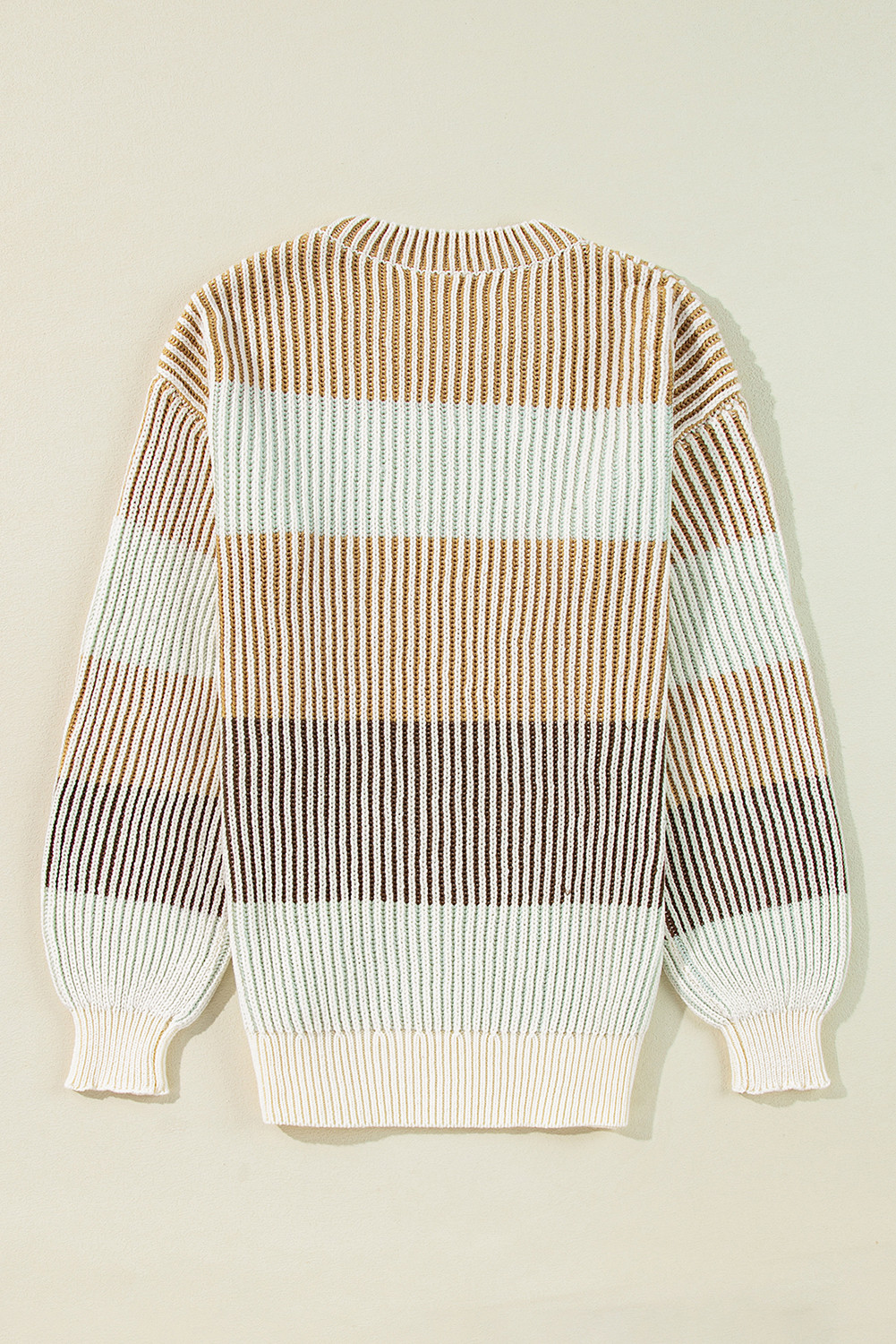 Suéter de malha texturizada com manga bolha e bloco de cores marrom