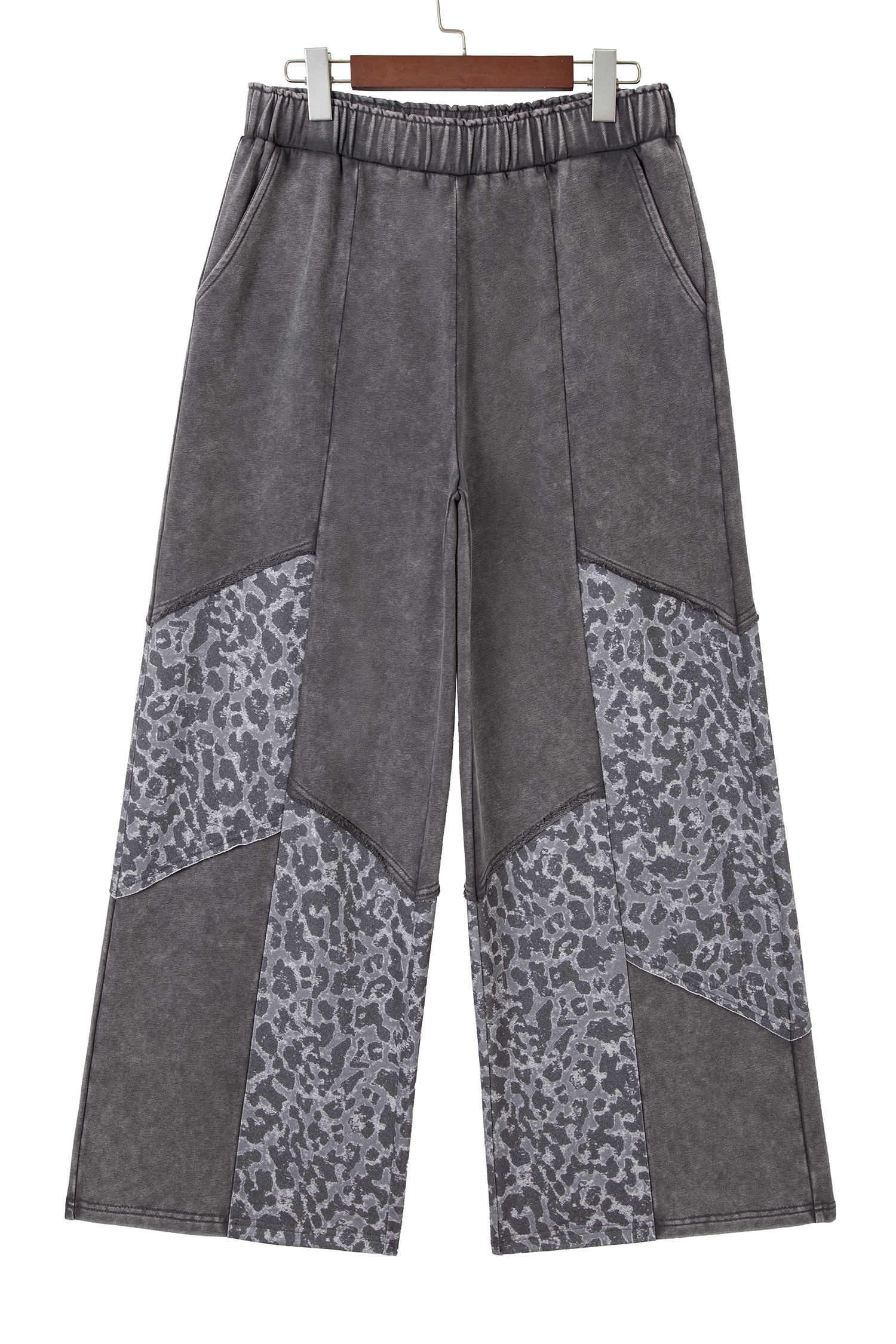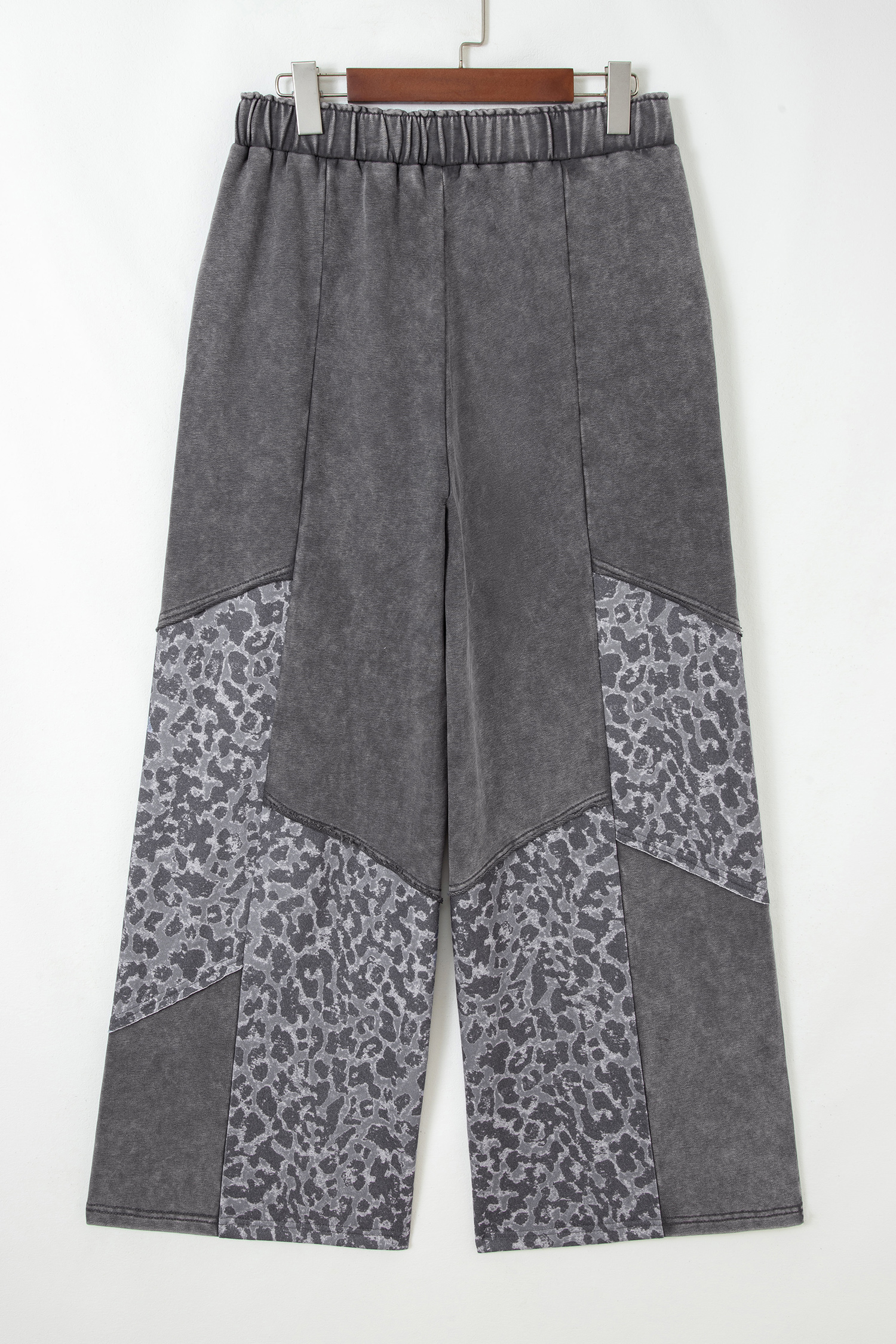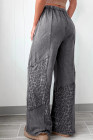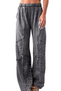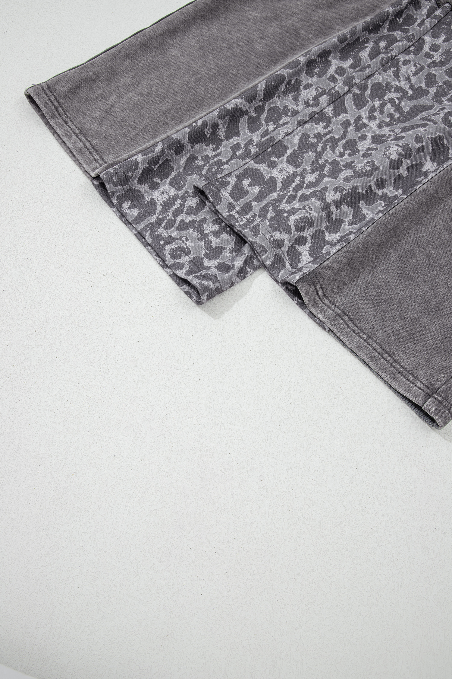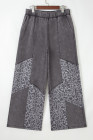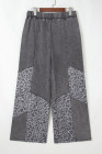 Calça Solta Leopardo com Lavagem Mineral Cinza Escuro e Patchwork