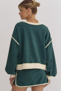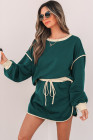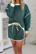 Conjunto de pulôver solto com contraste de cor Evergreen e saia-calça com cadarço na cintura
