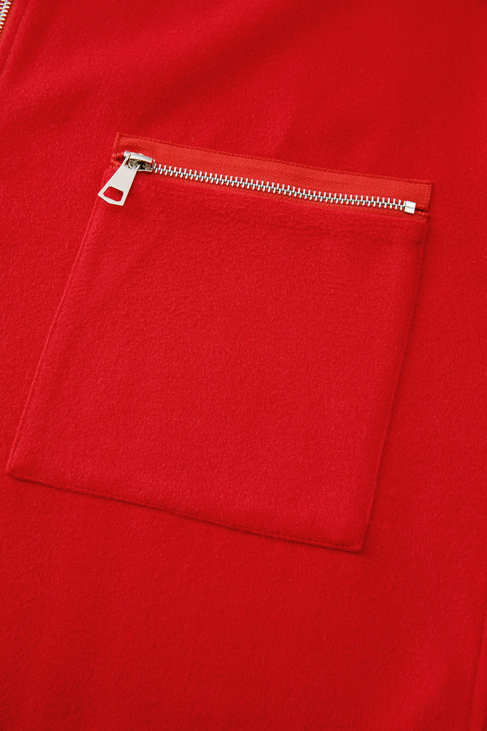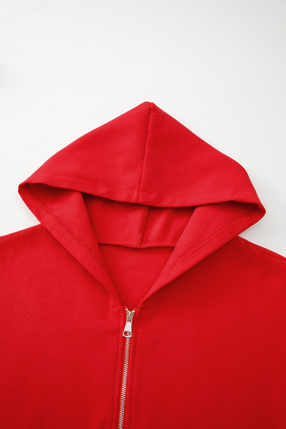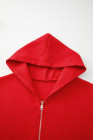 Casaco casual com capuz e zíper vermelho fogo cor sólida
