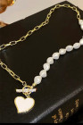 Colar de corrente de pérola com pingente em formato de coração dourado e strass