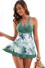 Vestido de banho verde floral patchwork com decote em V e shorts