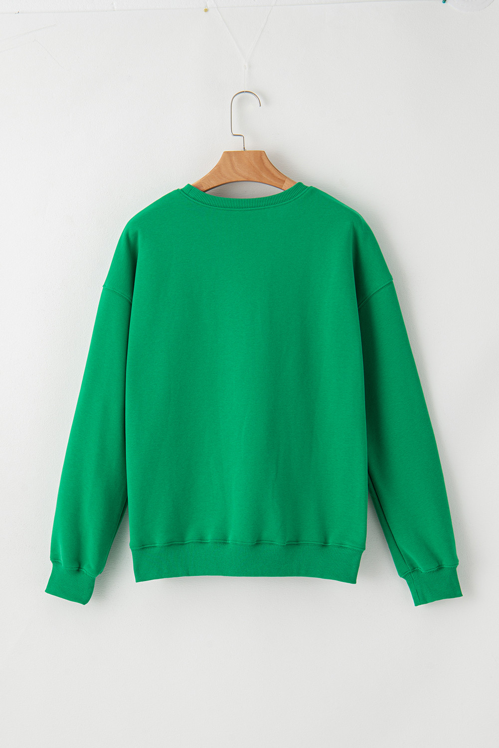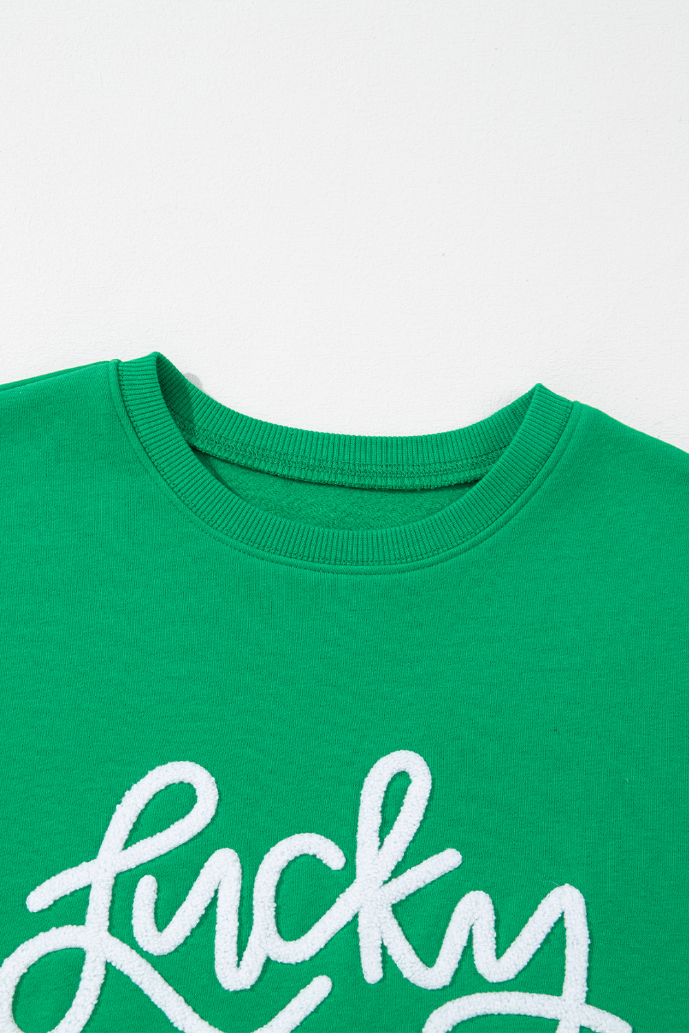 Este moletom apresenta um design bordado em chenille verde LUCKY, adicionando um toque divertido e moderno.