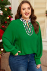 Blusa Plus Size Verde com Estampa de Leopardo e Gola Alta e Manga Bufante