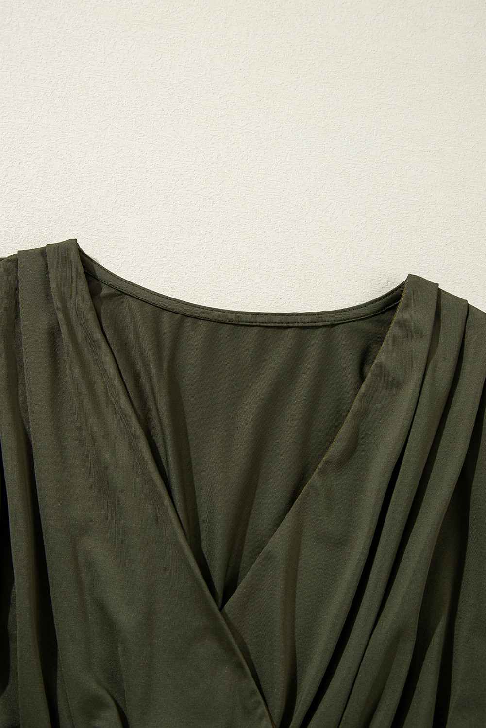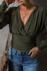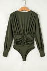 Body de manga comprida com babados verde musgo e decote em V
