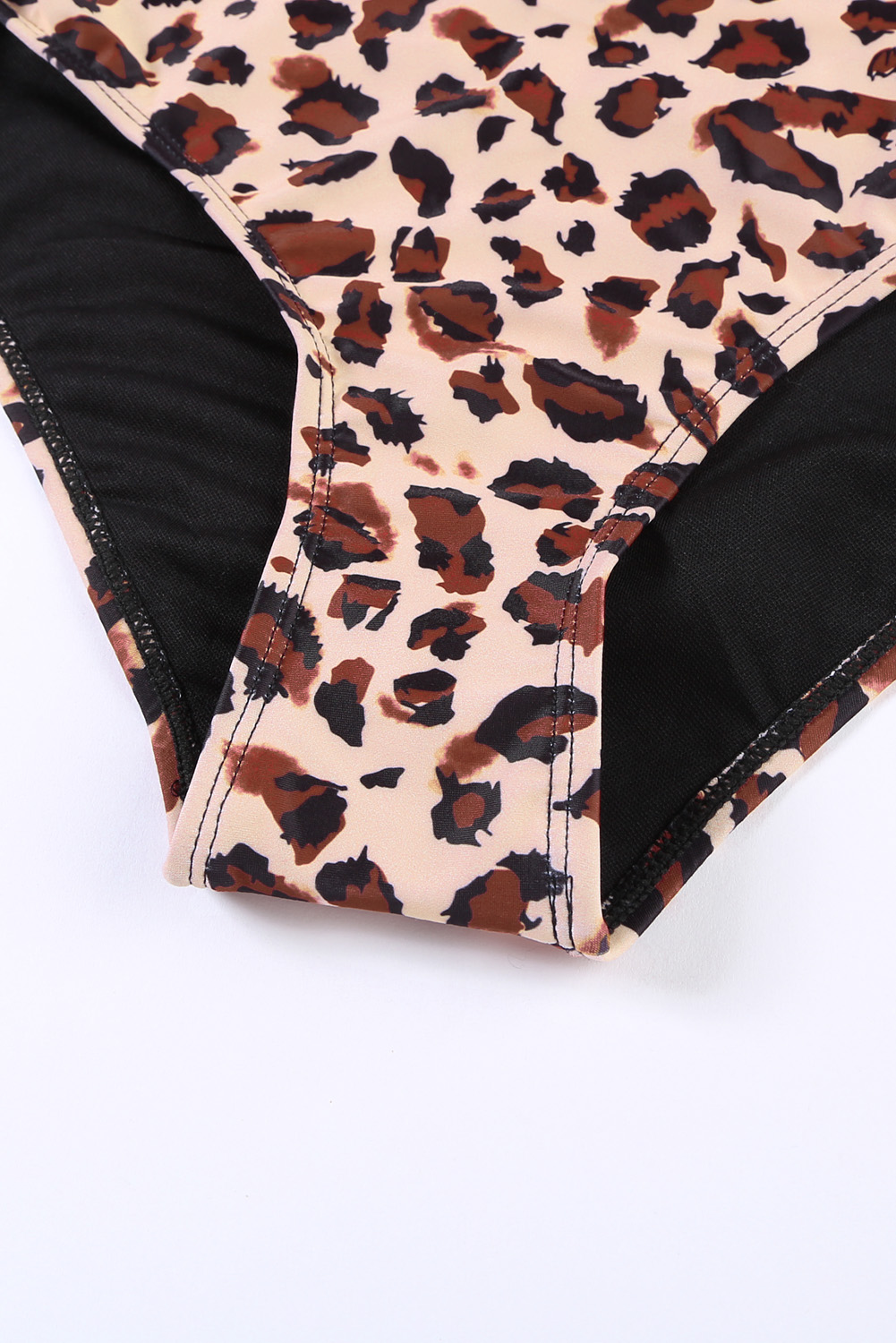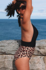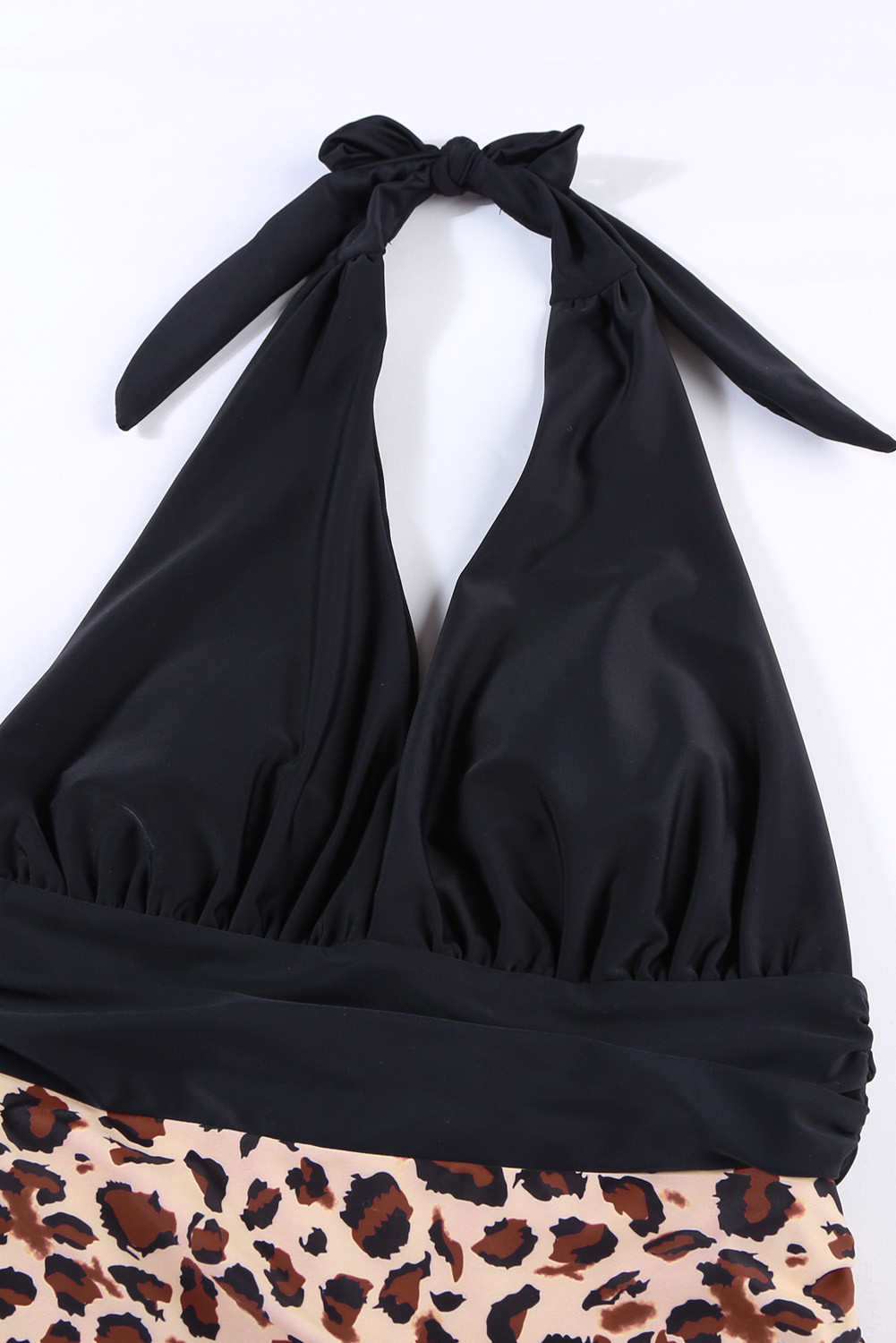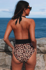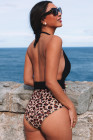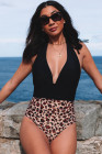 Mergulho decote em V Colorblock fundo de leopardo maiô de uma peça
