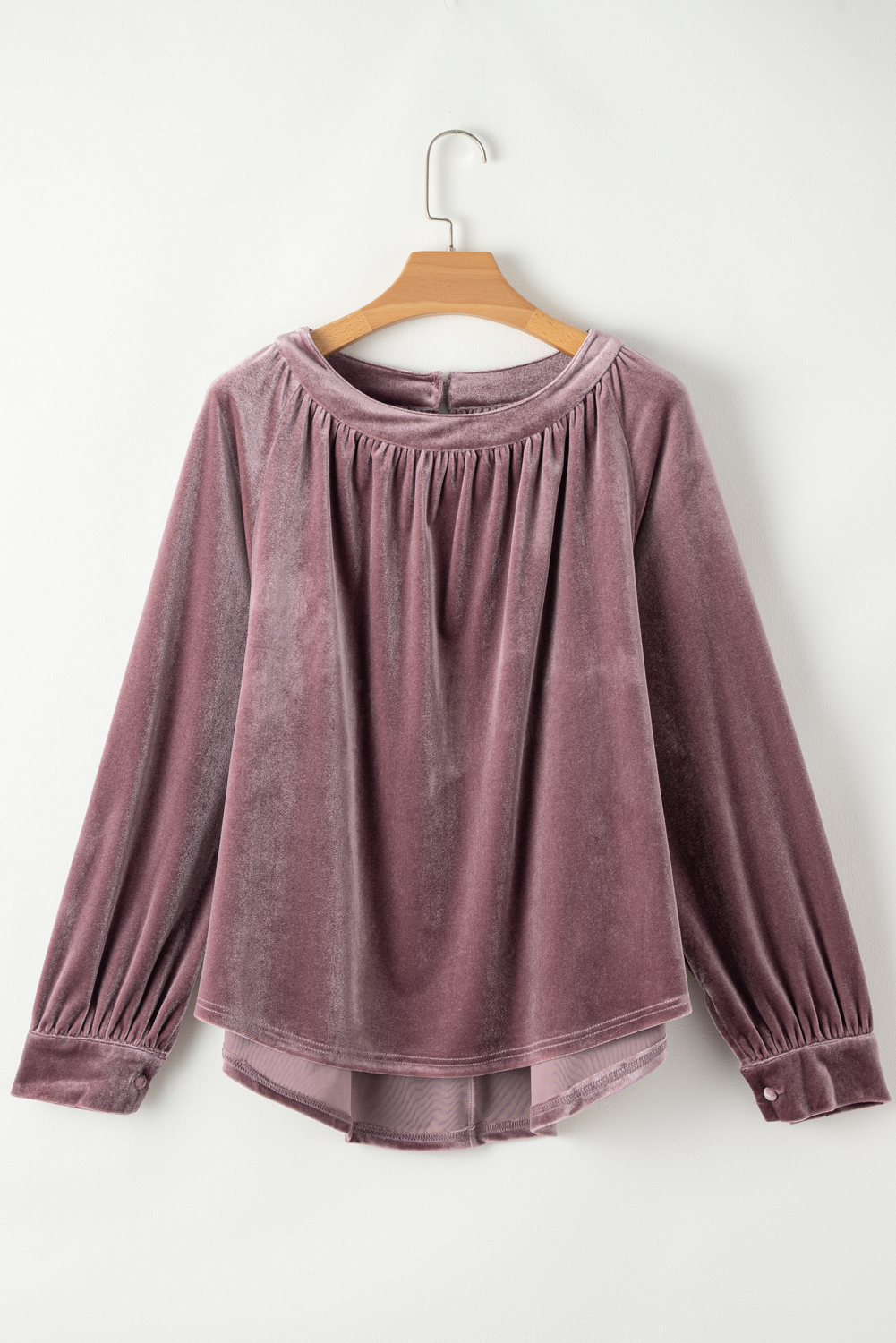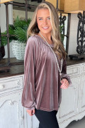 Top de balanço de veludo nas costas com botão rosa tan