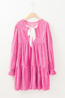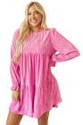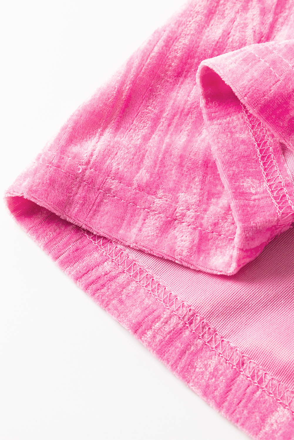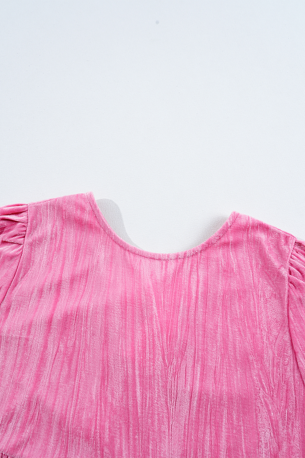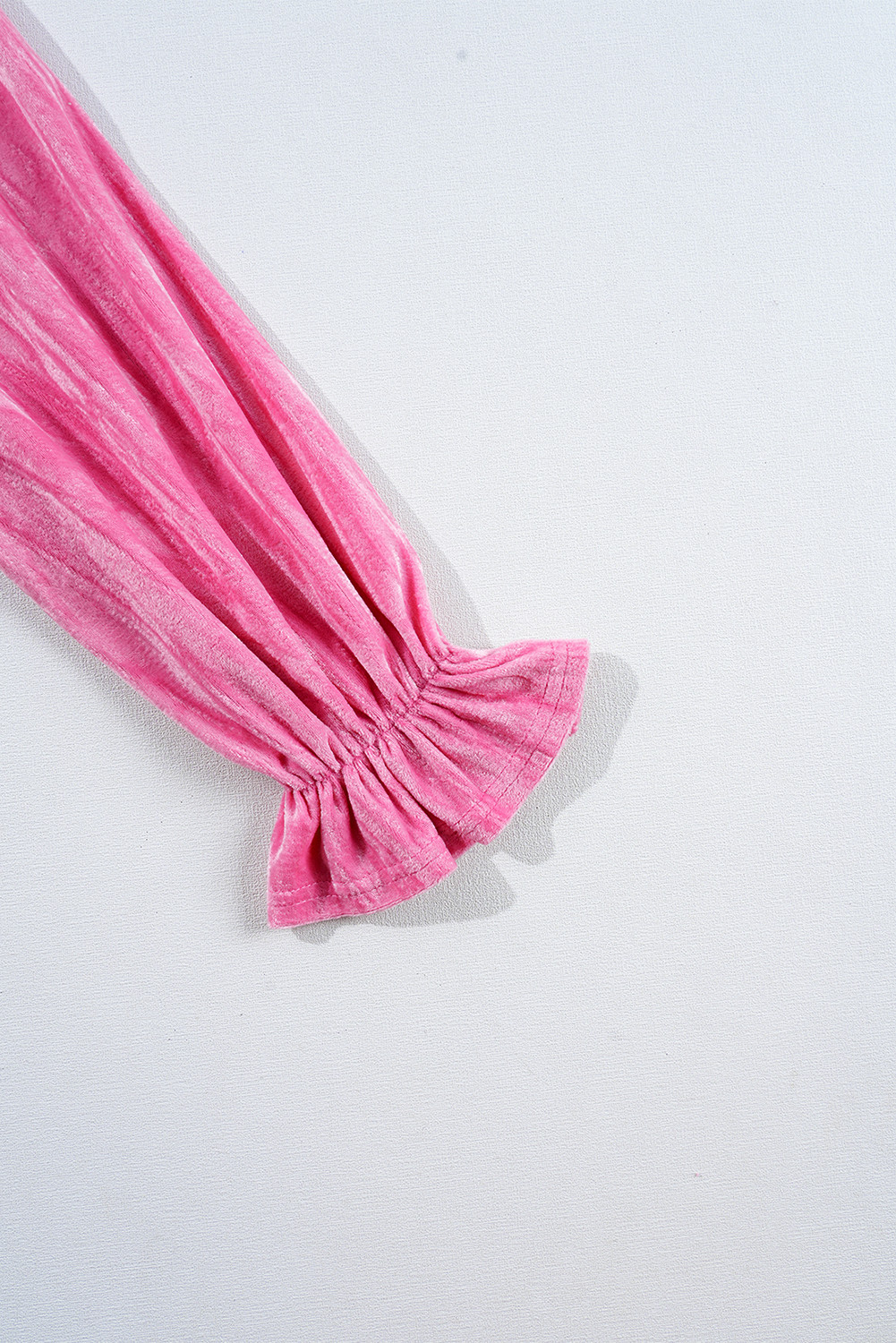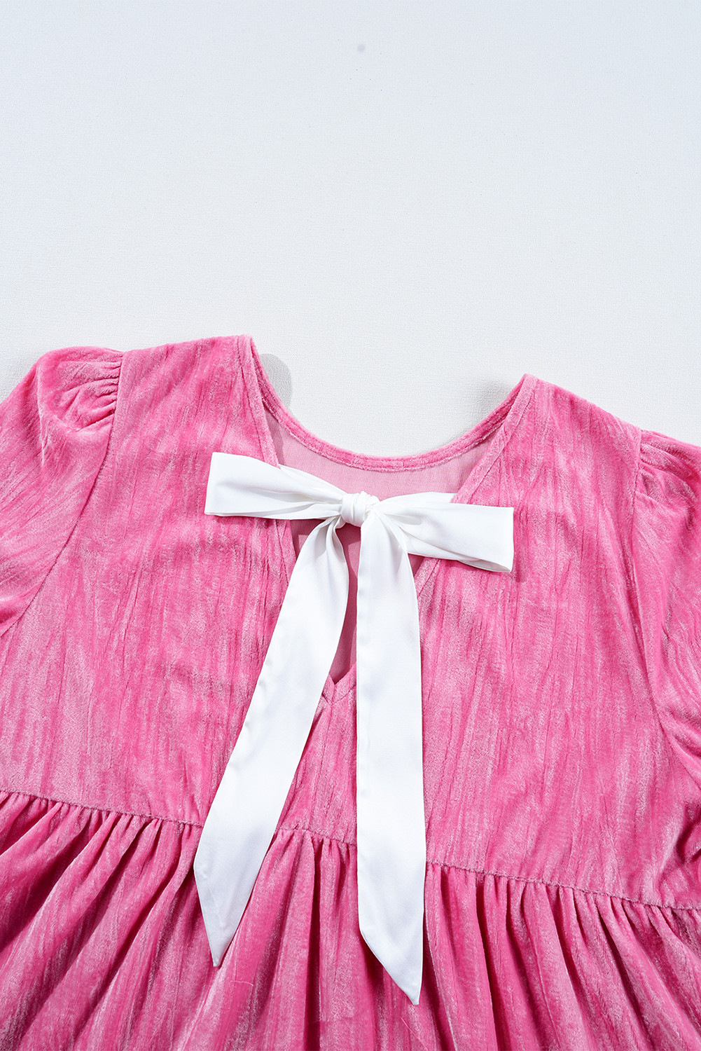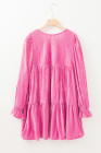 Minivestido de veludo rosa morango com babados e manga em camadas