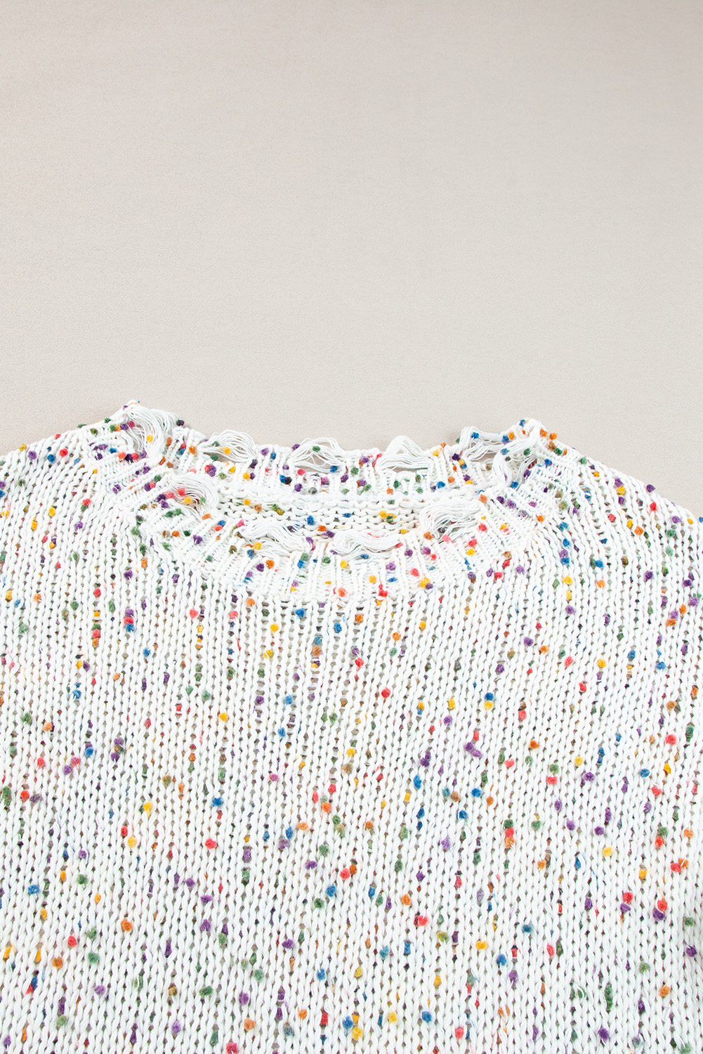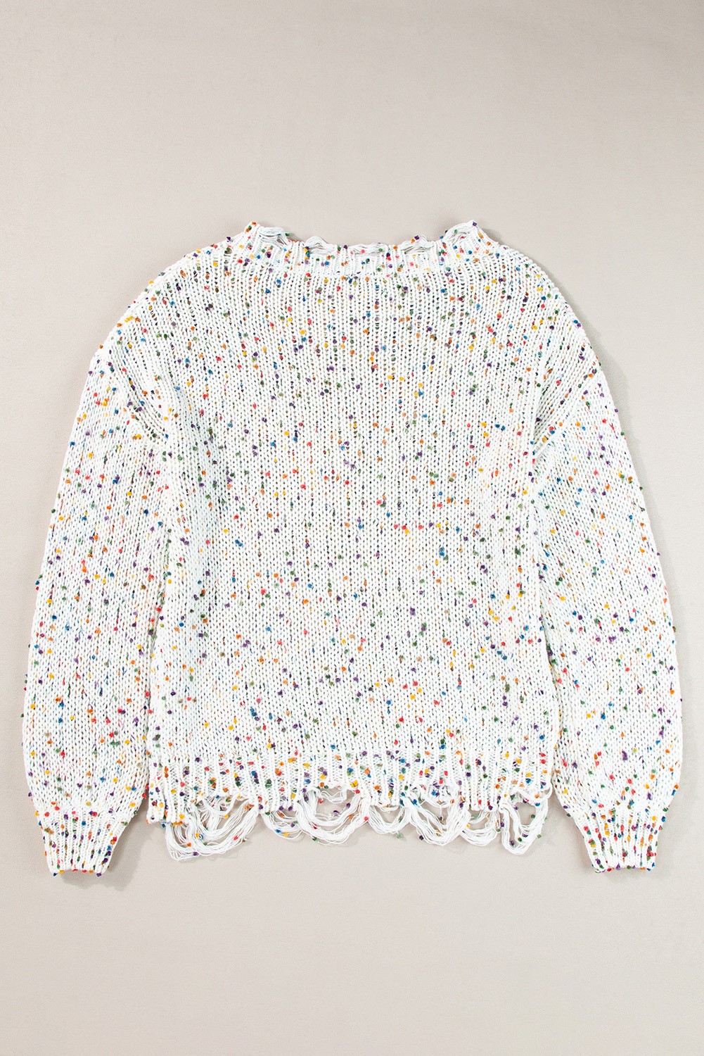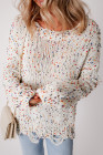 Suéter de malha desgastado com confete colorido branco
