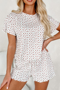 Conjunto de shorts de cintura alta com babados e manga curta com estampa floral