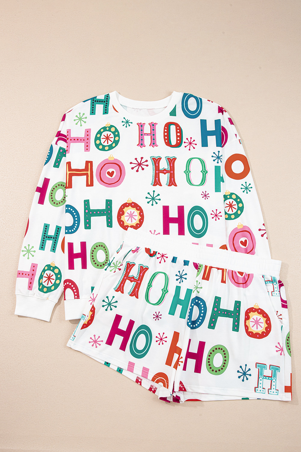 Conjunto de pijama de 2 peças com estampa Ho Ho Ho de Natal, tamanho grande, blusa de manga comprida e shorts