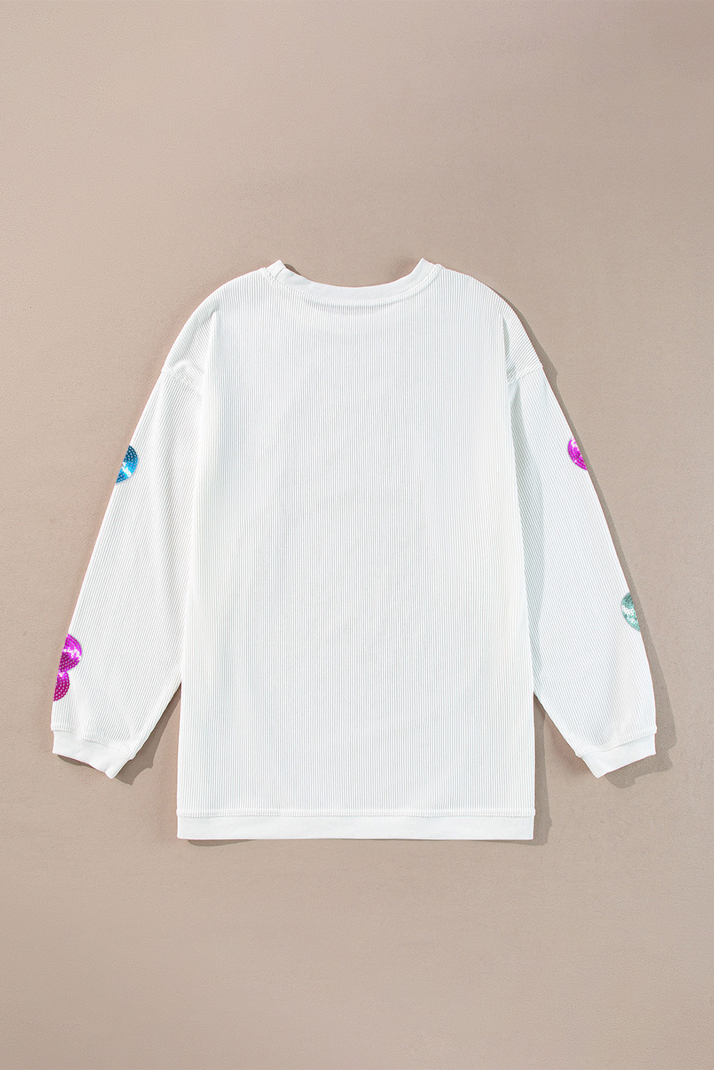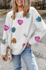Moletom folgado com cordão e lantejoulas com slogan de coração branco dos namorados